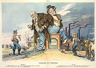 Description: A cartoon by Udo Keppler depicting the United States Meat Trust as an oligopsony, first encouraging poor farmers to raise cattle, then telling them that they have no choice but to sell their cattle to the Trust at a low price. First published in Puck, New York, 15 October 1913.