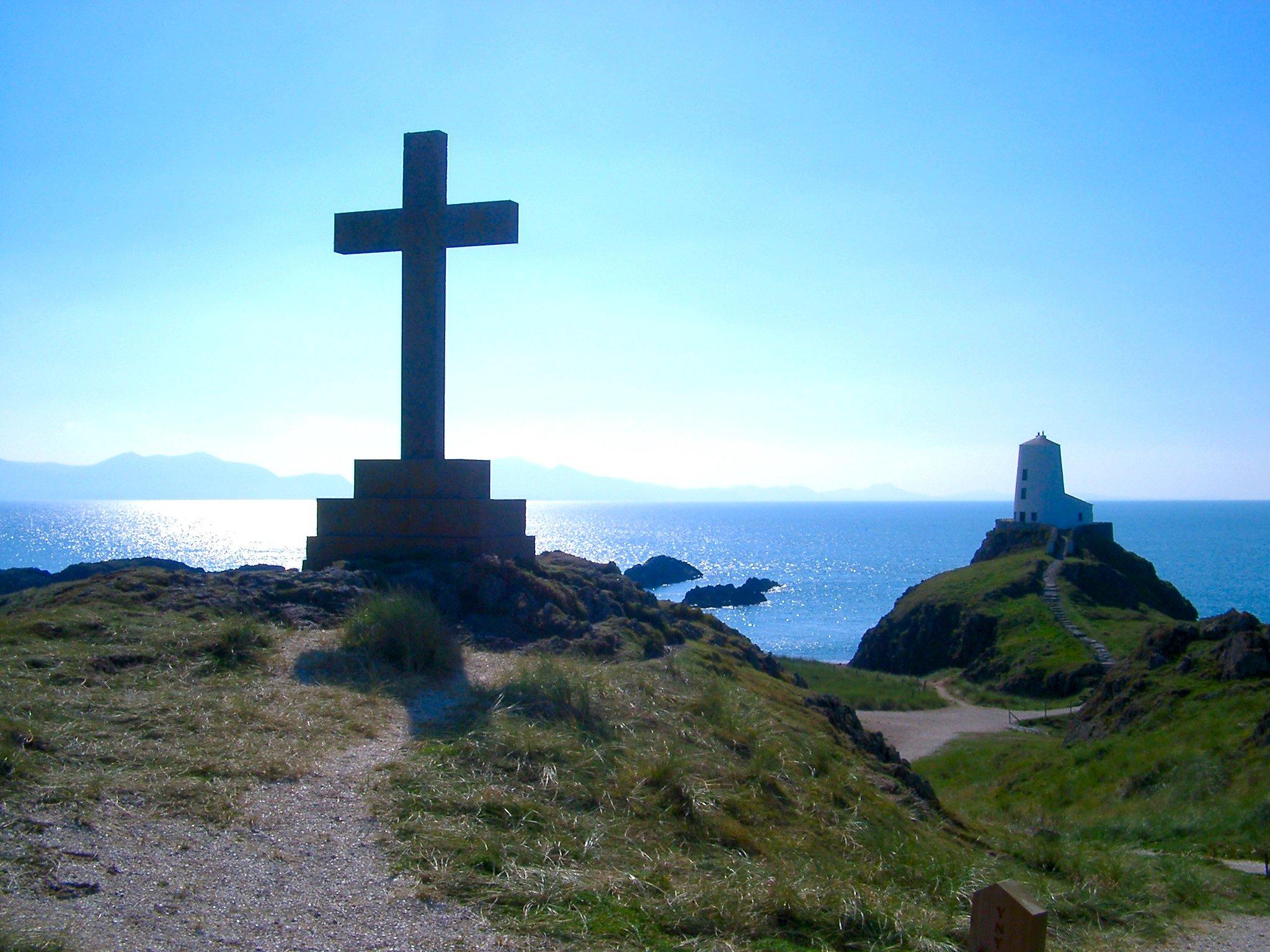 Credit: Originally from user of English Wikipedia User:Noel.morgan2000 (Image:ThelargelighthouseandcrossatLlanddwyn.jpg)