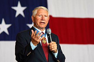 Description: Retired Lt. Col. Leo Thorsness speaks at the U.S. Air Forces in Europe's Air Force 60th Anniversary celebration Aug. 11 Ramstein Air Base, Germany. Colonel Thorsness is a Medal of Honor recipient.