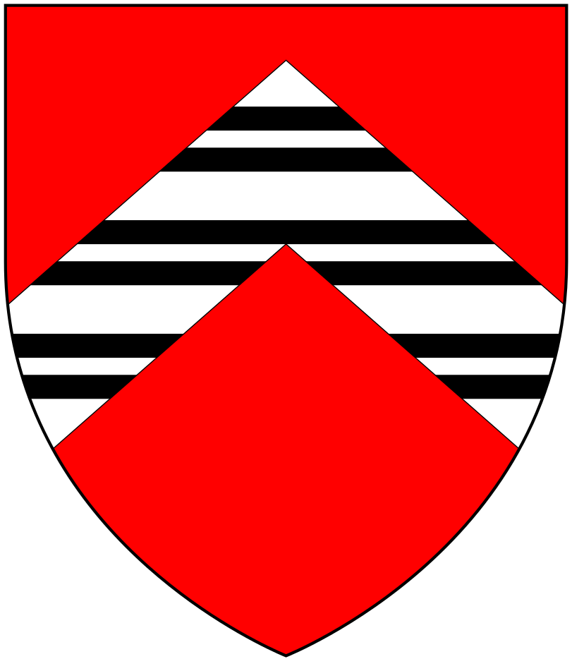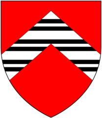 Description: Armorials of Throckmorton of Tortworth, Gloucestershire and of Coughton, Warwickshire: Gules, on a chevron argent three bars gemelles sable