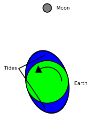 Description: A diagram of the tidal braking effect by which the Moon slows the Earth's rotation.
