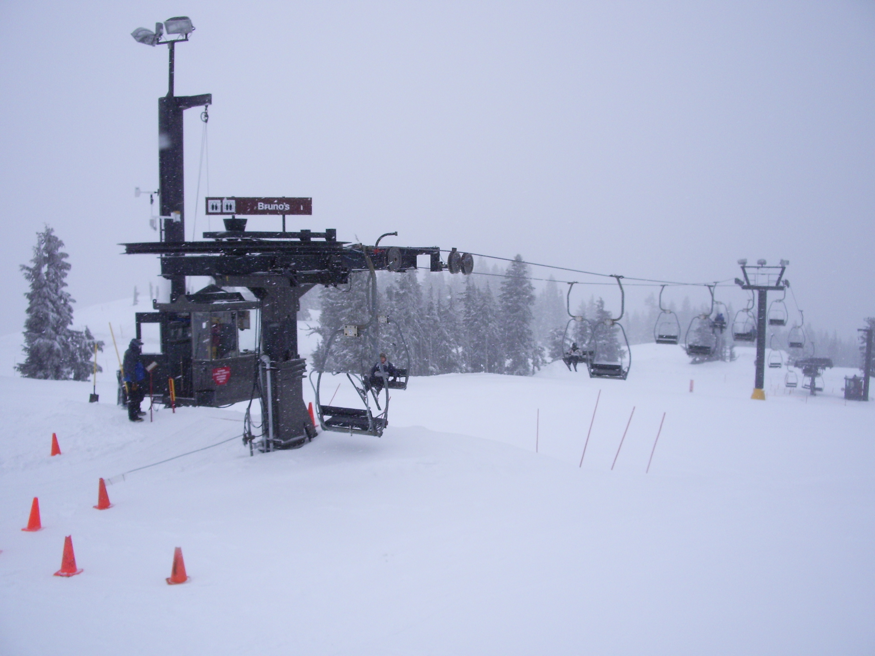 Description: Bunny slope at Timberline Lodge with chairlift. The top and the bottom are both visible as well as the wide, gentle slope.