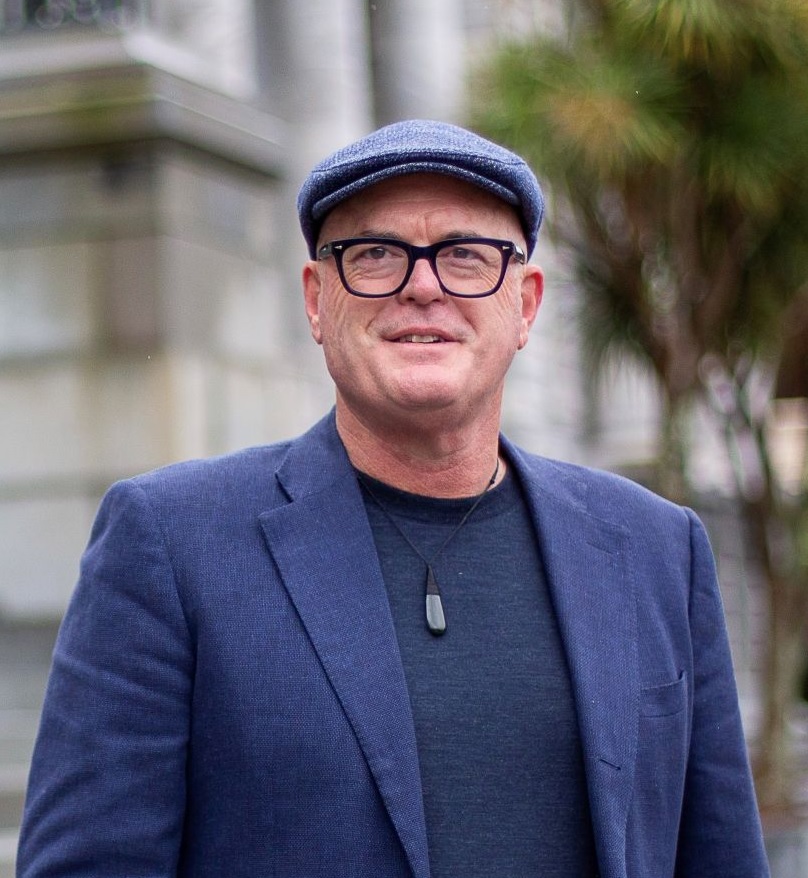 Description: New Zealand politician Todd Muller, standing outside Parliament in 2023