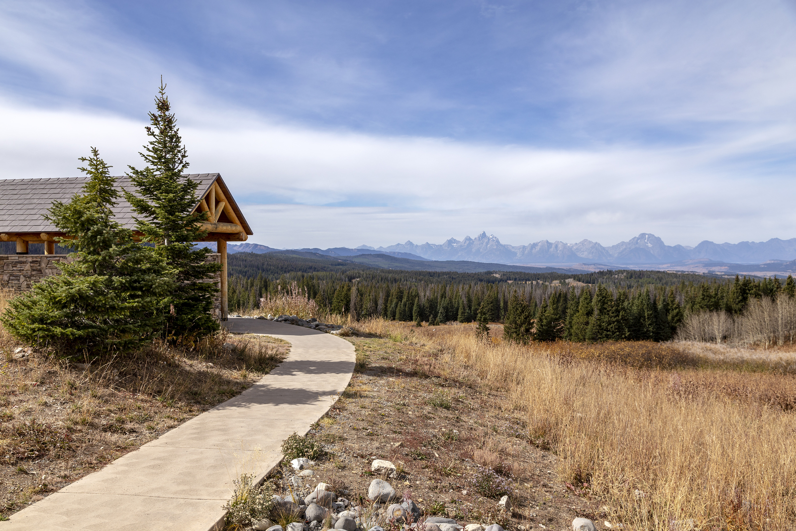 Description: View of the Teton Range from the Togwotee Pass turnout and shelter, Wyoming, USA. The Tetons are about 30 miles/50 km away.