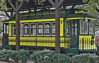 Description: Bellaire, Texas' Streetcar. Now numbered 124, it is former Porto, Portugal car 173, built in Porto in 1929 but based on streetcars the Porto streetcar system had previously purchased from Philadelphia-based J.G. Brill Company in the early 20th century – and similar to streetcars that operated in Bellaire. It was imported from Portugal in 1985 by Oregon-based streetcar importer Gales Creek Enterprises, restored and placed on display in Bellaire in autumn 1985. It was renumbered 124, in honor of a streetcar that had run on the former Bellaire system.