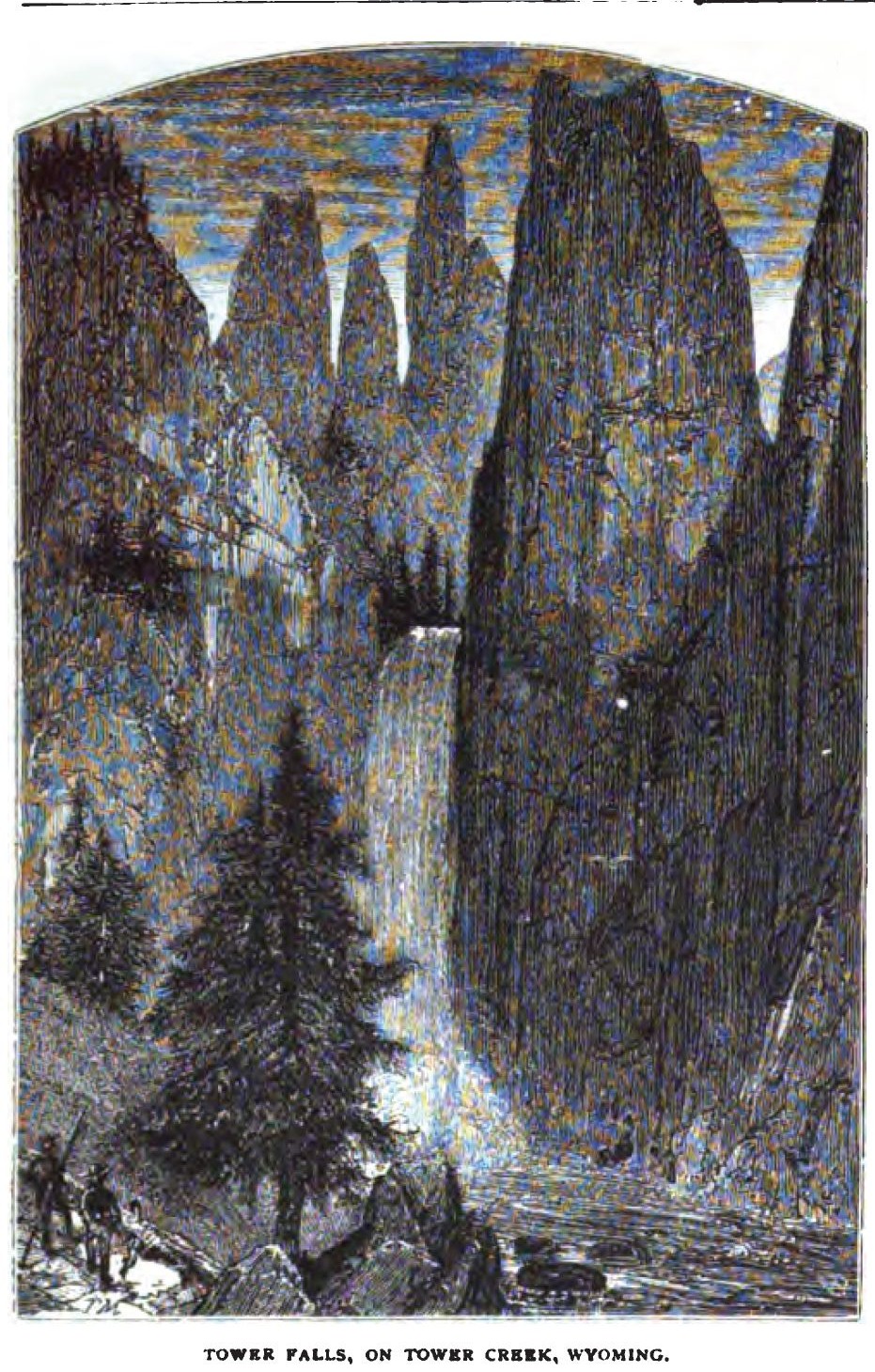 Description: Drawing of Tower Falls in Nathaiel P. Langford's Scribner's Monthly article: The Wonders of Yellowstone, 1871, illustrator Unk