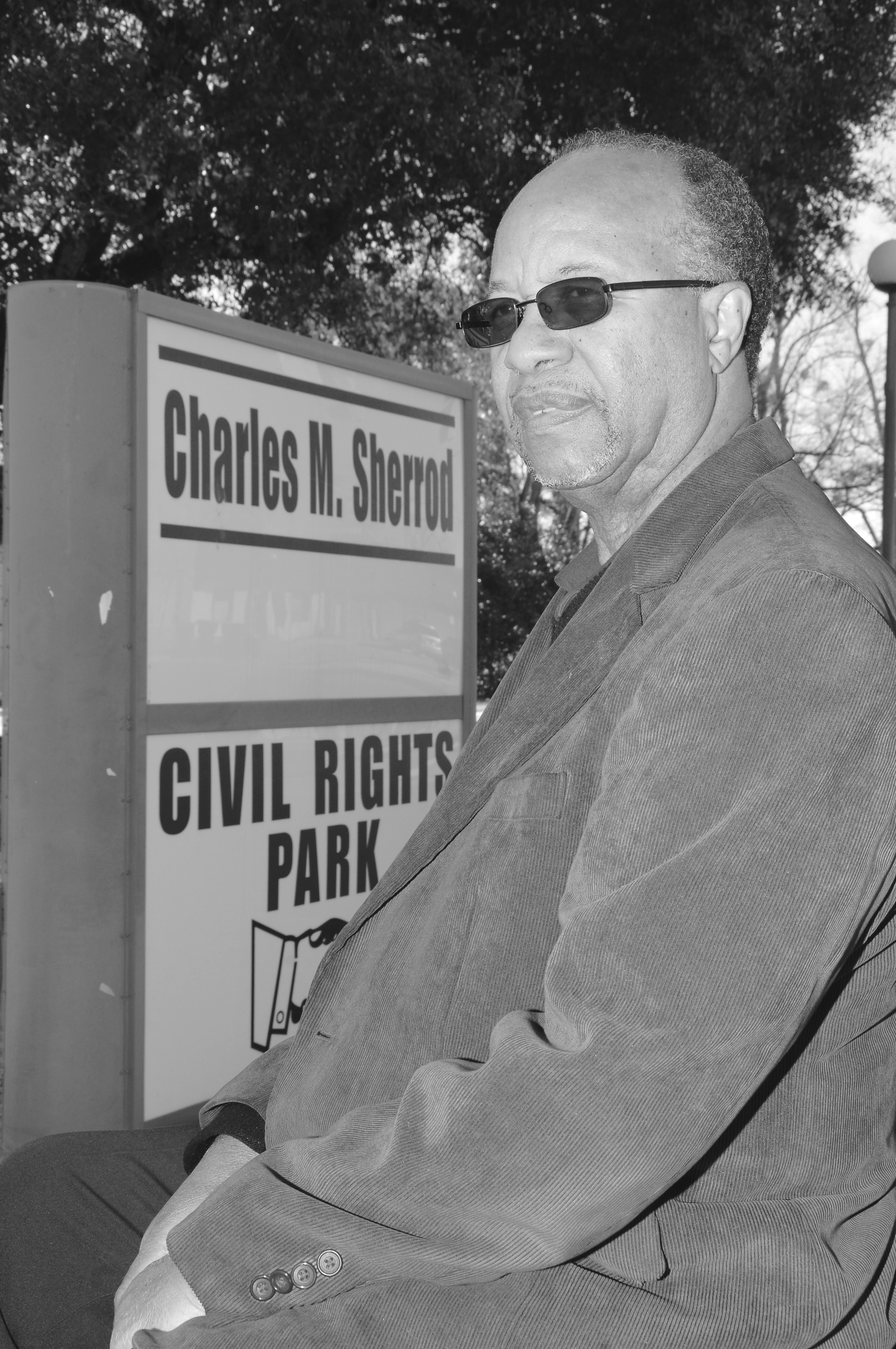 Description: Charles M. Sherrod, a local civil rights activist, sits on a bench, Jan. 5, in the Civil Rights Park in Albany, Ga., that bears his name.