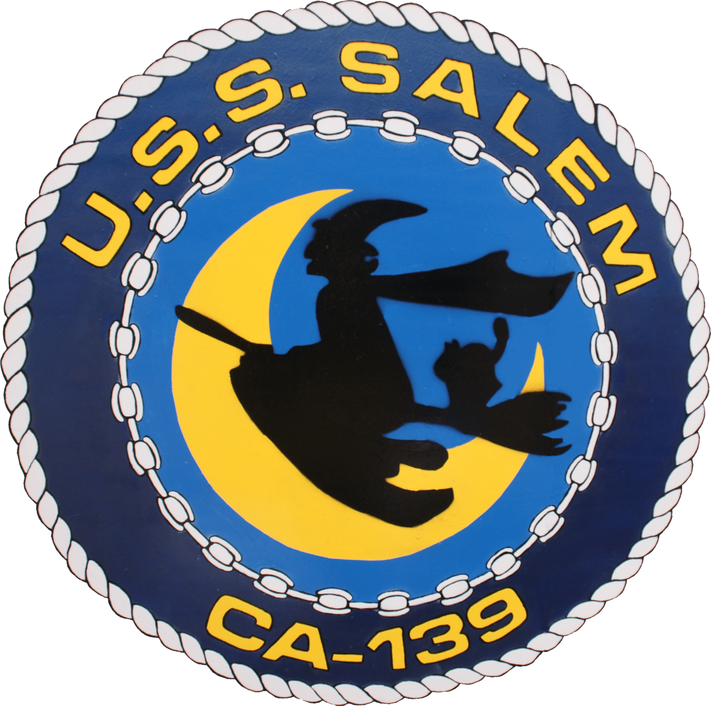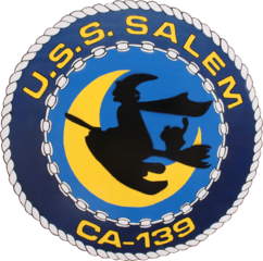 Description: Crest of the U.S. Navy heavy cruiser USS Salem (CA-139). The seal is from 1949, the photo of the seal was taken in 2011.