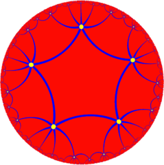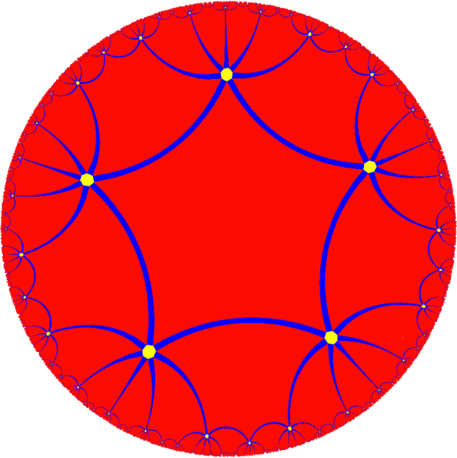 Description: * KaleidoTile, Topology and Geometry Software, Jeff Weeks Hyperbolic plane regular tiling: {5,7