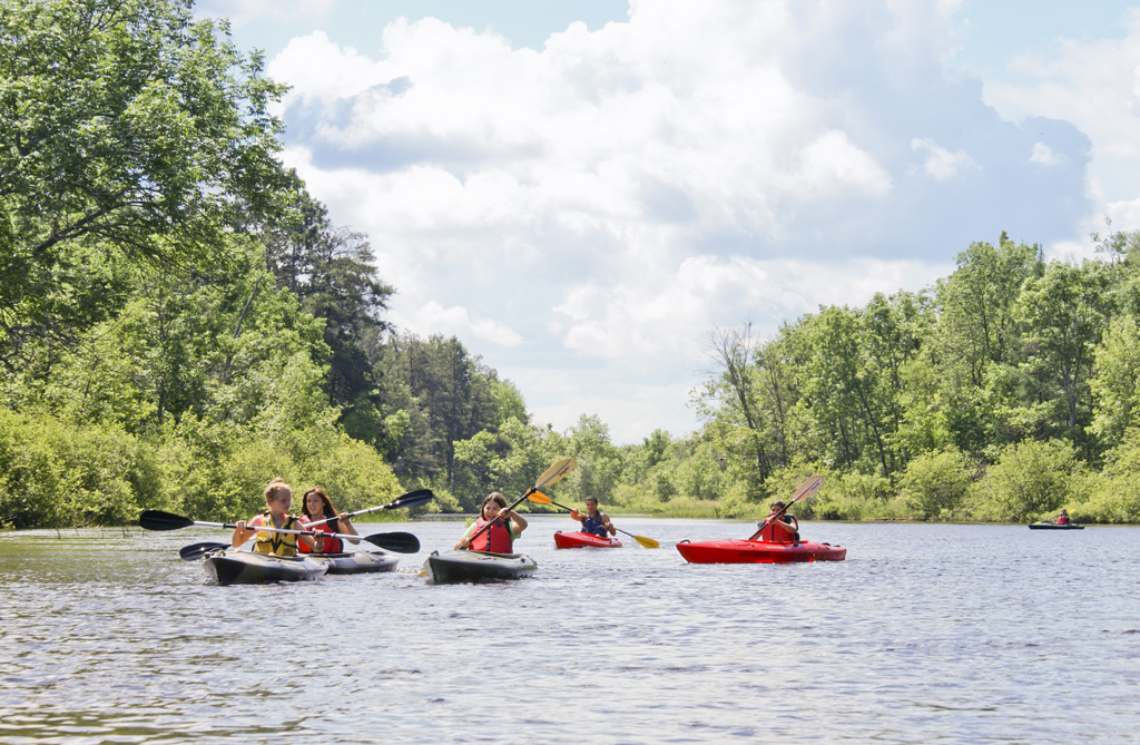 Description: Lac Courte Oreilles Boys and Girls Club paddlers on the Namekagon River near Big Bend Landing.
