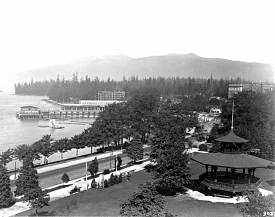 Description: English Bay Pier, Alexandra Park Bandstand and Beach Avenue in Vancouver, British Columbia, Canada