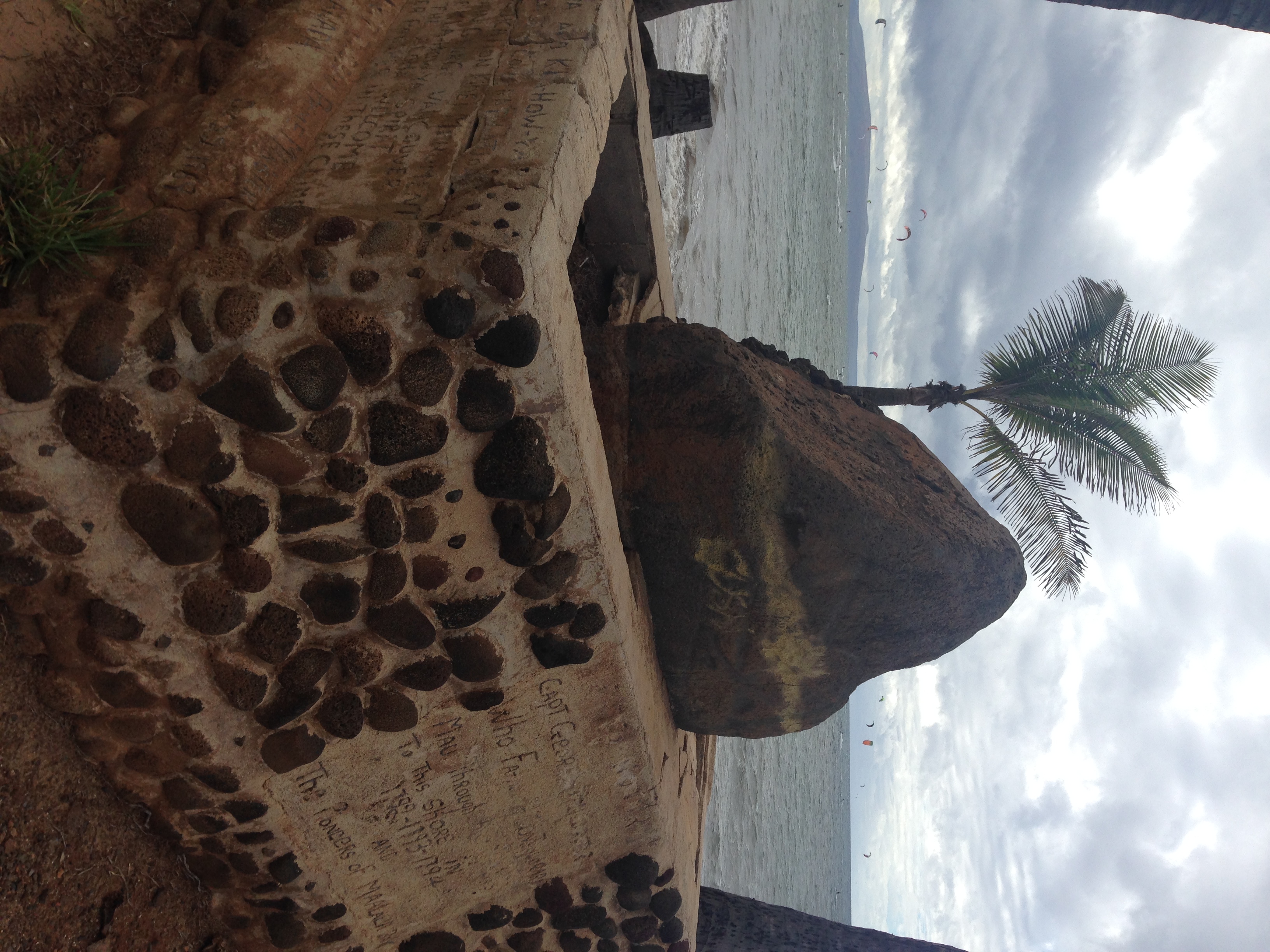 Description: Site of Captain Vancouver Landing in Kihei with Kites in the background.