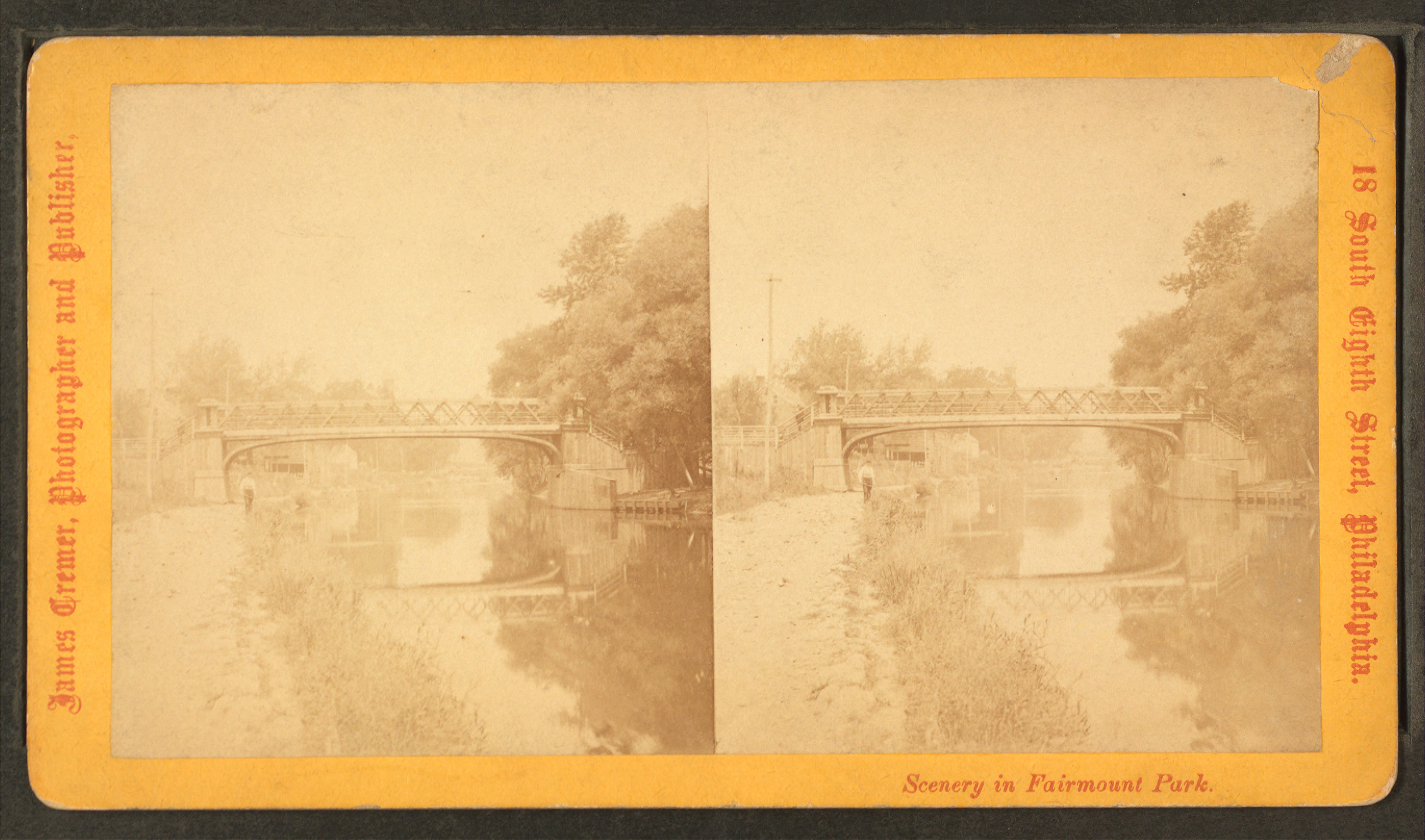 Title: View of a bridge. Alternate Title: Scenery in Fairmount Park.