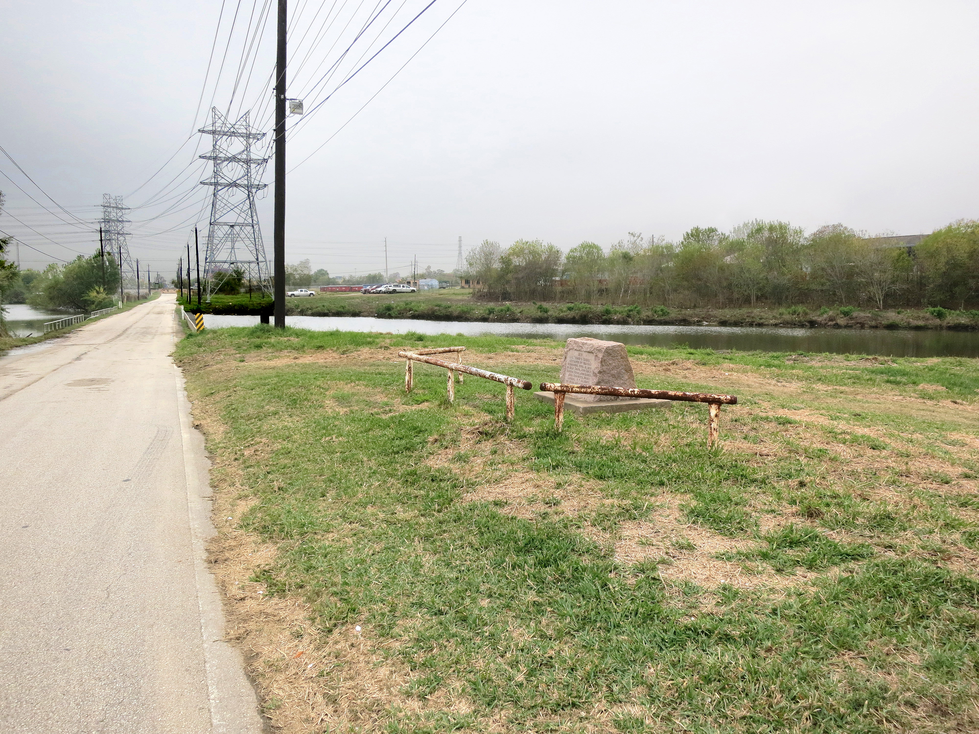 Description: Vince's Bridge over Vince's Bayou destroyed by military permission April 21, 1836 by Deaf Smith, John Coker, Denmore Reves, John Garner, John Rainwater, Moses Lapham, V.P. Alsbury. This historic deed is believed to have insured the capture of Santa Anna