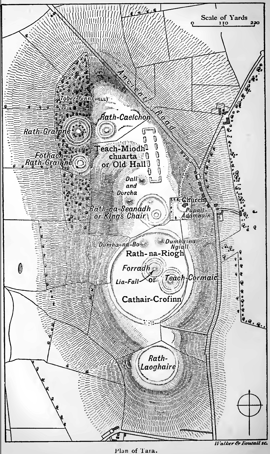 Description: Nineteenth century plan of the Hill of Tara based on a survey of the site and historical records.