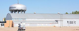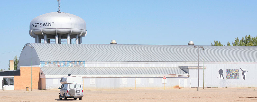 Description: The water tower in Estevan, Saskatchewan next to the ice rink for the Estevan Bruins. 100828-44