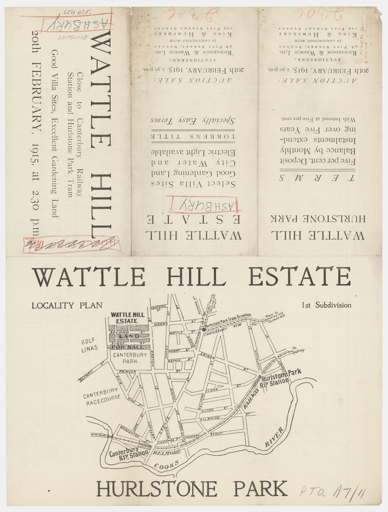 Description: Wattle Hill Estate Ashbury, 1915, Location Map, Richardson and Wrench, State Library of New South Wales Z/SP/A7/11