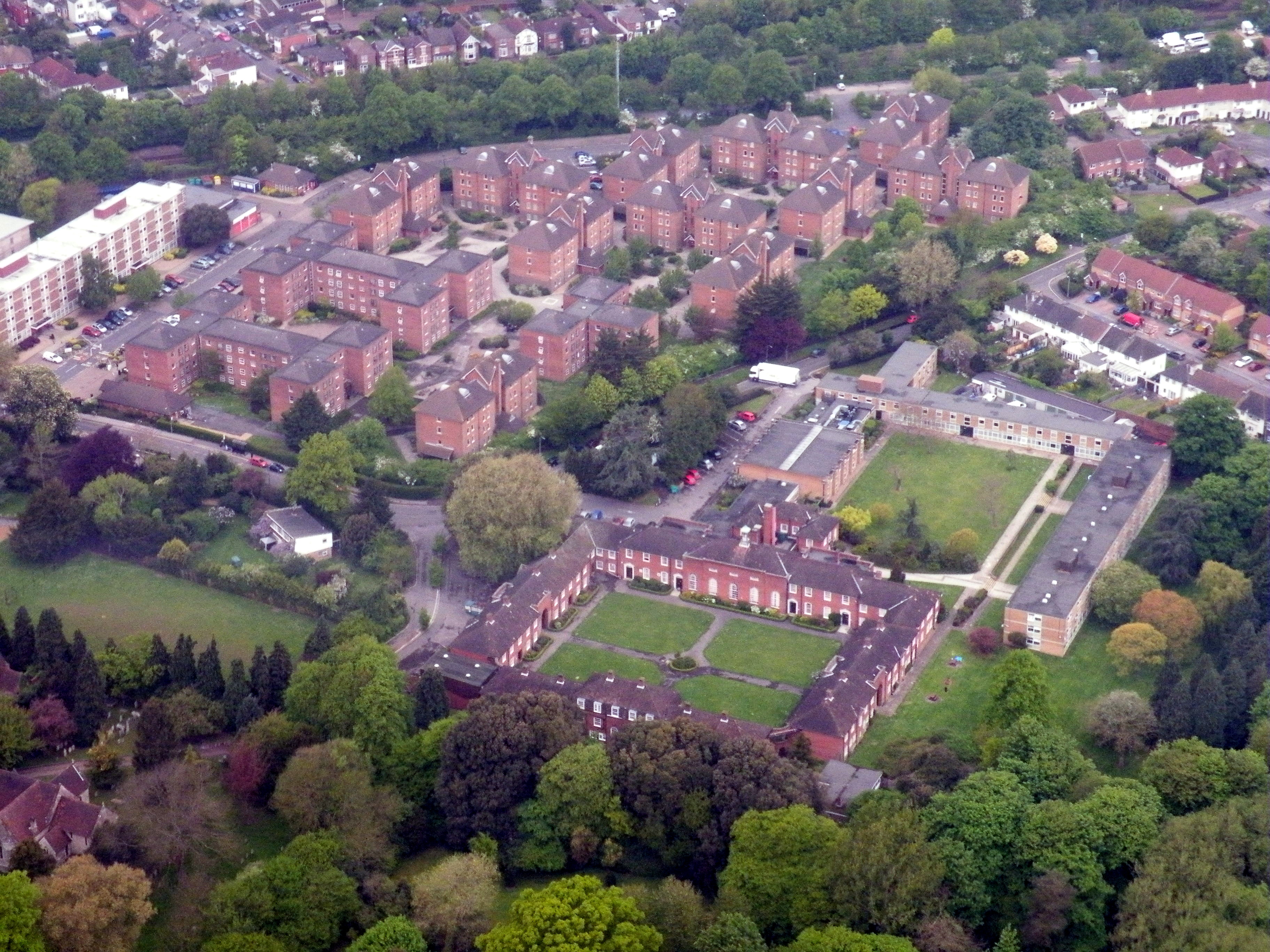 Description: An image of Wessex Lane Halls of Residence. Top left is Montefiore House, bottom right is Connaught Hall.