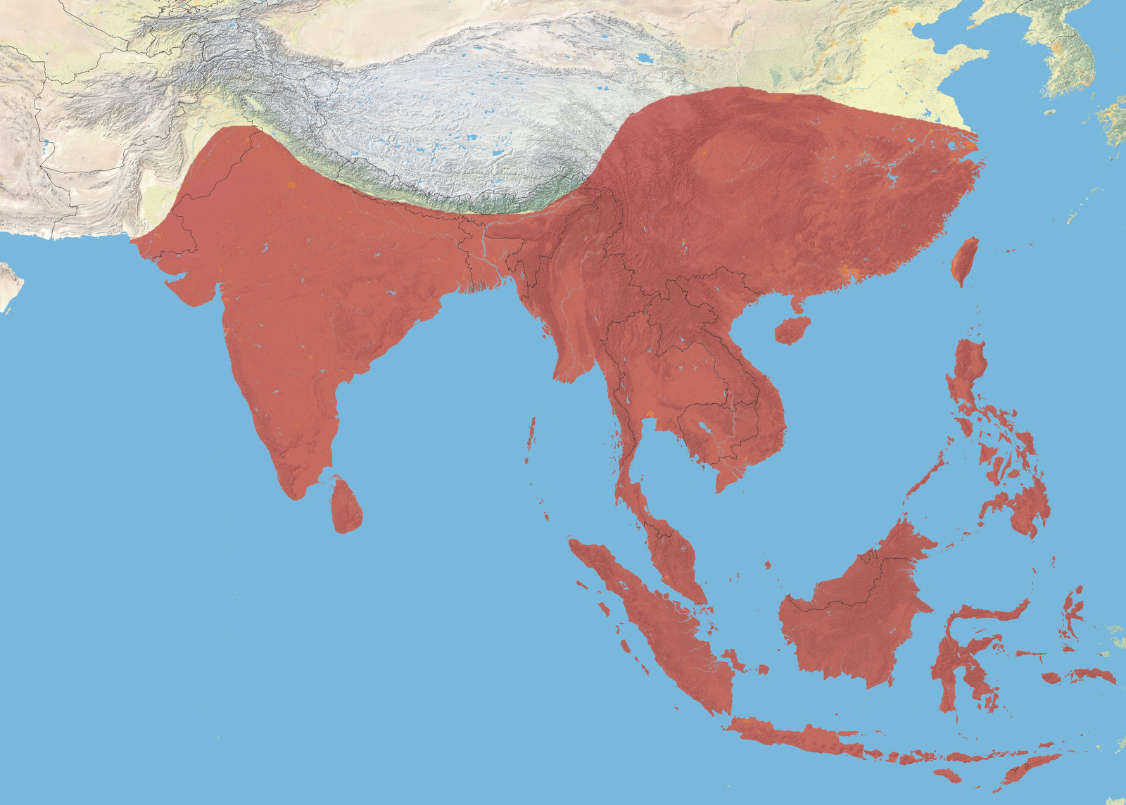 Description: The Distribution of the White-breasted Waterhen