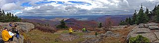 Description: Panoramic view from summit of Wittenberg Mountain in the Catskill range of New York, with w:Ashokan Reservoir and other mountains of the area, such as Ashokan High Point, visible.