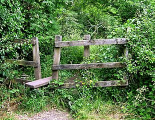 Description: Stile along the disused Thames and Severn Canal towpath at Sapperton, Gloucestershire