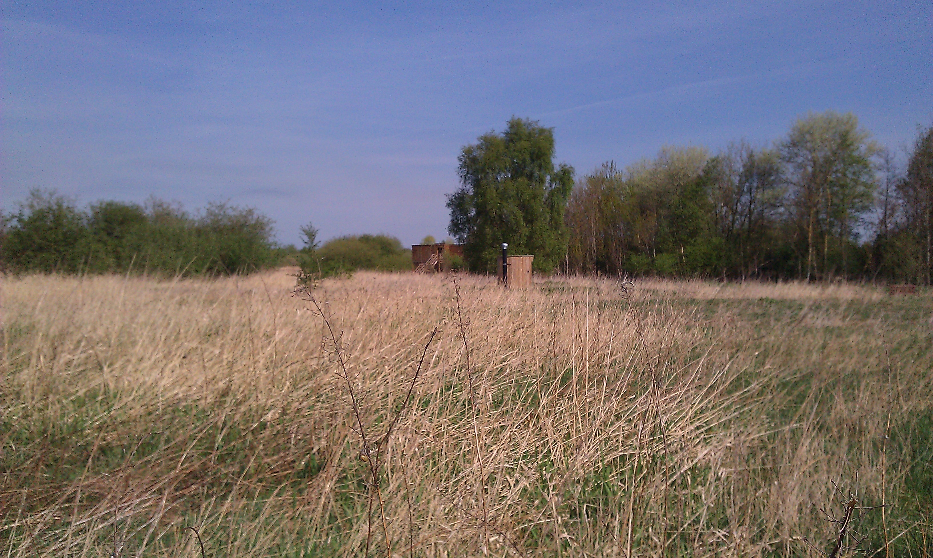 Description: Woolston Eyes nature reserve, Warrington, England. Showing the main bird hide (circa 2010/11) and KazubaLoo evaporating and dehydrating toilet.