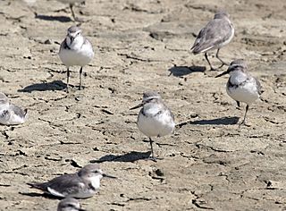 Description: Wrybills (Anarhynchus frontalis) on mud flat, Firth of Thames, Mirada, New Zealand