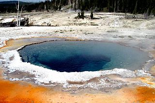 Description: Crested Pool is a natural hot spring in Yellowstone National Park.
