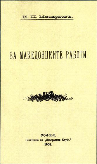 Description: The front page of the book "Za makedonckite raboti, Sofia 1903" by Krste Petkov Misirkov.Sofia, 1903