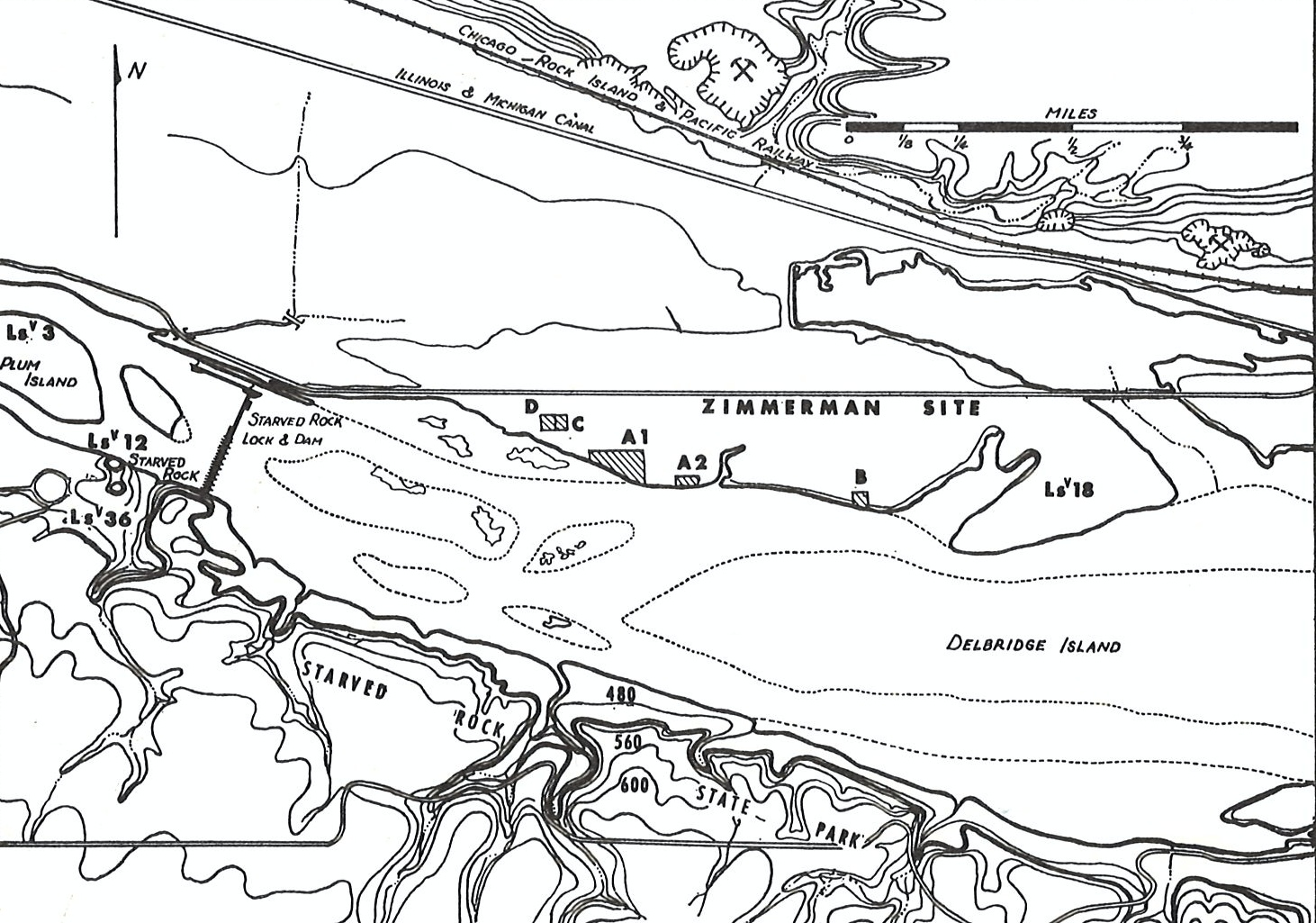 Description: Map of the Zimmerman site, located on the Illinois River near Starved Rock, Illinois