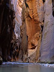 Description: The "Wall Street" section of Zion Narrows in Zion National Park.