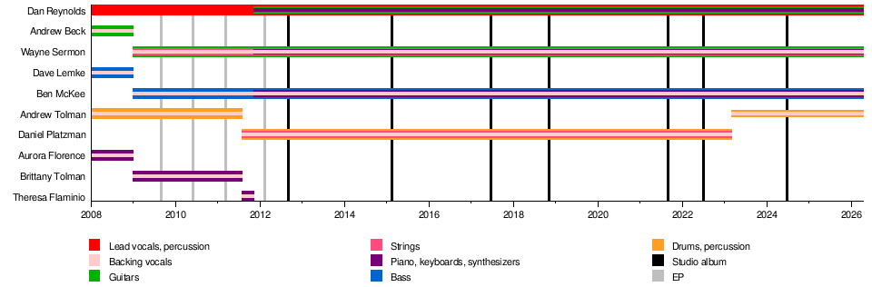 Imagine Dragons is a popular American pop rock band that started in 2008 in Las Vegas, Nevada. The band's main members are lead singer Dan Reynolds, guitarist Wayne Sermon, and bassist Ben McKee. They became famous with their song "It's Time".