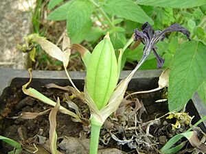 After the flower blooms, it forms a fruit called a capsule. This capsule opens in three parts to show many seeds inside. Some iris seeds have a small, fleshy attachment called an aril.