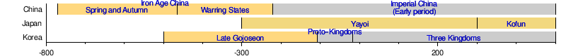 In China, writing developed very early. So, the "Iron Age" there is sometimes used for a period from about 900 BC to 100 BC, when iron was present but not yet the main metal.