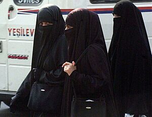 Islam teaches that women should dress in a special way. This way of dressing applies to women and teenage girls, but not usually to young children. If you visit some Islamic countries, women are often expected to dress this way too.