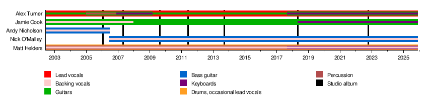 Their sixth album, Tranquility Base Hotel & Casino, was very different. It moved away from guitars and focused on a more complex, piano-based style. Alex Turner explained that he wrote the songs on piano because the guitar wasn't giving him new ideas anymore.