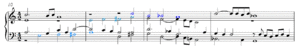 Each hymn usually starts with a part where the hymn melody is played slowly in one voice. Other voices play faster, more complex music around it. In some parts, the hymn melody moves between different voices. In a few pieces, two voices play a canon, which is like a musical round. Most of his pieces have four voices, except for the canon pieces, which have three.
