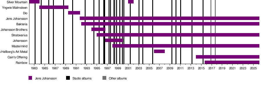 Jens's father, Jan Johansson, was a famous Swedish jazz pianist. Jens has also worked with the guitar player Allan Holdsworth. Today, Jens plays keyboards for the Finnish power metal band Stratovarius and Ritchie Blackmore's rock project Rainbow. He is known for playing very fast and with great skill in styles like neoclassical music, jazz fusion, and rock.