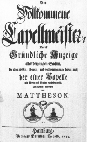 Johann Mattheson (born September 28, 1681 – died April 17, 1764) was a talented German musician and writer. He was a composer, singer, and also worked as a diplomat. He wrote many important books about music theory.