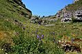 Lathkill Dale is famous for its wide variety of wildflowers. You can find beautiful orchids here, and even the rare Jacob's ladder flower. It's also a great spot for butterflies. The valley has old woodlands and is home to birds of prey, dippers, woodpeckers, and water voles.
