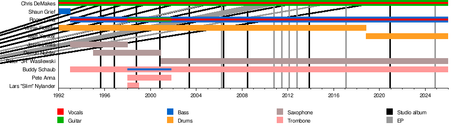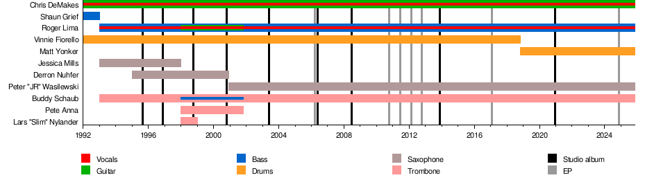 - Buddy "Goldfinger" Schaub – trombone, occasional bass (1993–present)