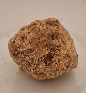 Bremer Kluten are small pieces of peppermint fondant (a sugary paste), half-covered in dark chocolate. They are about the size of two sugar cubes.