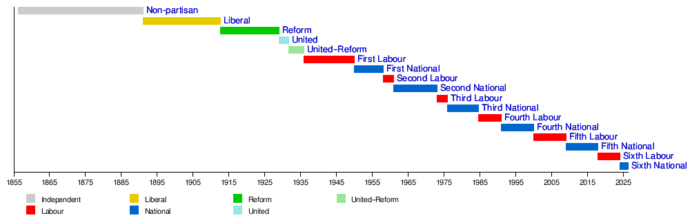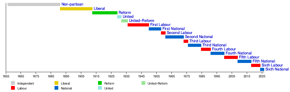 - Seddon Ministry, 1893–1906: 1 May 1893 to 21 June 1906