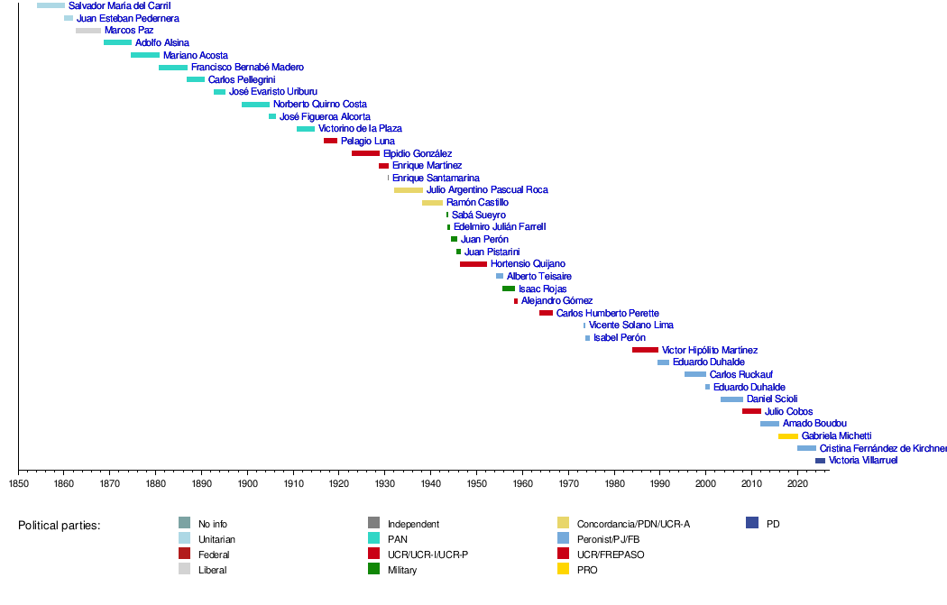 5 March 1860 | 4 November 1861 | 1860 | Unitarian | Santiago Derqui | Became president after Santiago Derqui stepped down. | ||