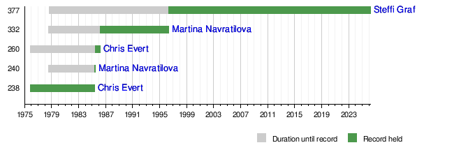 This timeline shows which player held the record for most weeks at No. 1 over time.