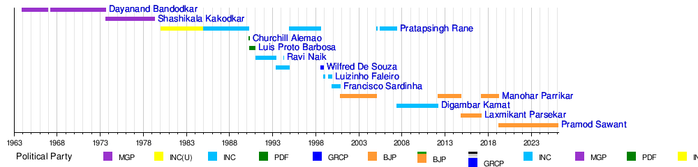 | 11 | Pramod Sawant | Sanquelim | 19 March 2019 | 28 March 2022 | 6 years, 341 days | ||||