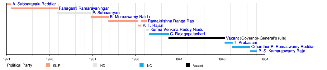 Leader of the Presidency Legislative Council | 14 July 1937 | 29 October 1939 | 2 years, 107 days | Rajagopalachari I | Indian National Congress | ||||