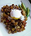 - Loco moco (United States): A modern dish from Hawaii. It consists of a bed of white rice topped with a hamburger patty, a fried egg, and brown gravy.