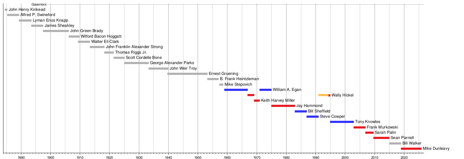 The current governor is Mike Dunleavy, who is a Republican. He started his term on December 3, 2018.