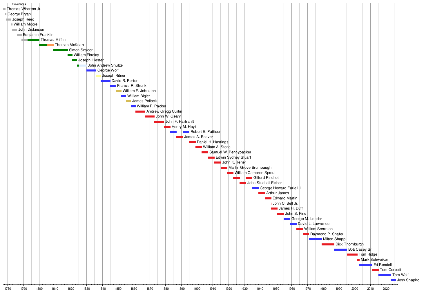 Milton Shapp was the first governor to serve two terms under the 1968 rules. Tom Corbett was the first governor to lose an election when trying to get re-elected.